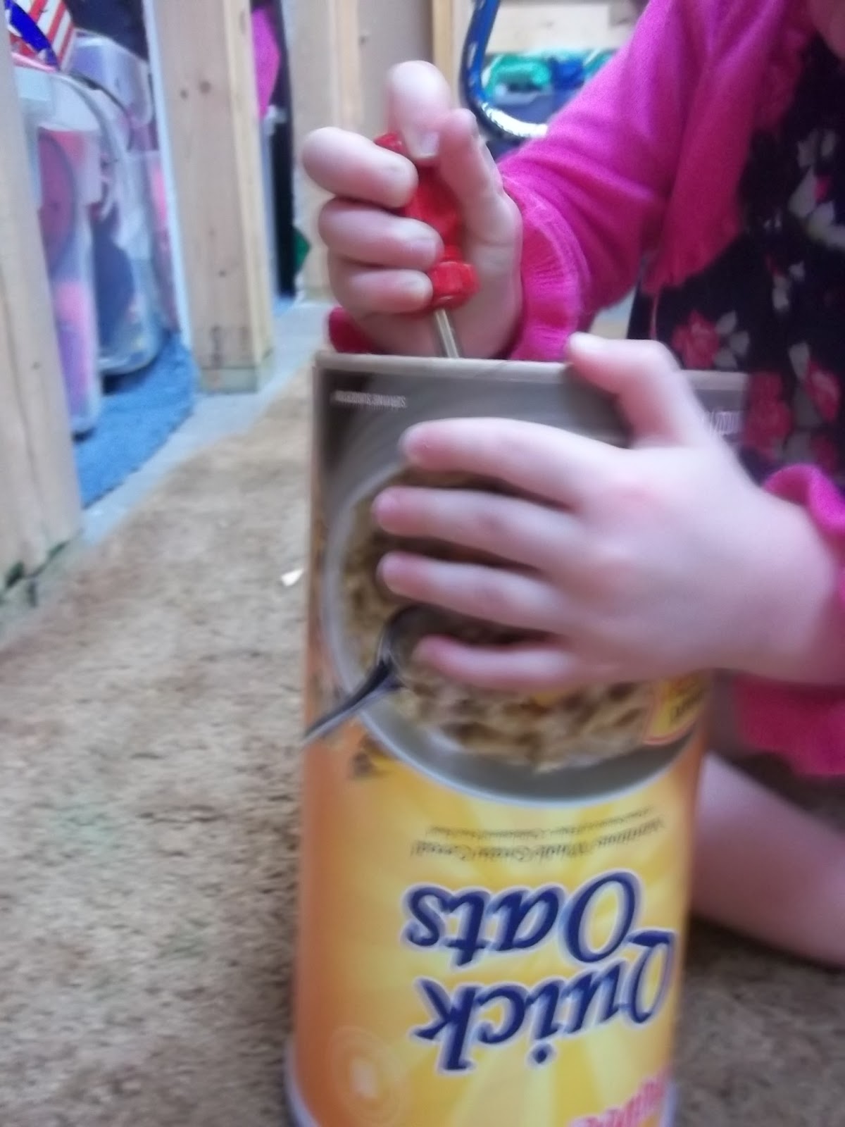 Note for parents of young ones: Maggie did this same activity with an empty oatmeal box and a screw driver. She just poked holes in the top of the box in a random pattern. The flashlight still created a beautiful picture when we put it under the container and turned out the lights.