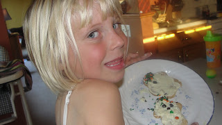 After breakfast we grabbed the sugar cookie dough that had been set aside for making pumpkin cookie cut-outs and we hauled out the snow man cookie cutter as well. The flour that covered my youngest ones mimicked the snowfall outside and the smiles that frosted their faces were sweeter than the frosting we spread once the cut-outs had cooled. After topping the cookies with snow-white icing and sprinkling pumpkin confetti on top, we arranged our creations on a plate and unveiled our winter October scene: snowmen in the pumpkin patch!  With a satisfied sigh, Hannah pointed out that the snowmen were even cooler than scarecrows. And I agreed.