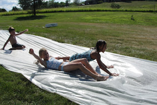 At one point, as Lizzy struggled to stop herself in the middle of the slip and slide, she yelled in frustration, “I should have never stepped foot on this thing!” Exactly my point.