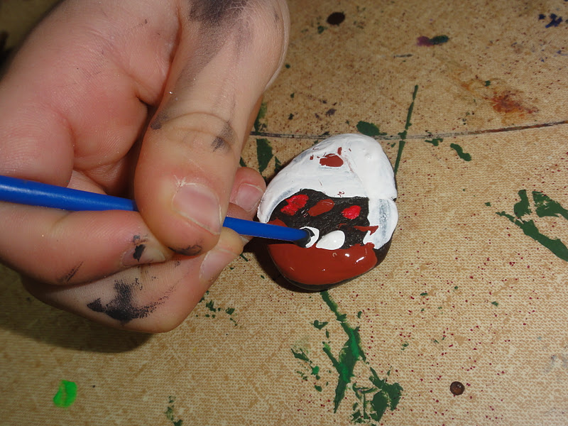 If Santa Clause is a piece of your Christmas celebration, grab some paints and get rocking! (We used acrylic so the paint wouldn’t wash off in wet weather, but I think permanent markers would work as well.) With your help, Santa can spend the next few days keeping an eye on your friends to see if they are being naughty or nice.
