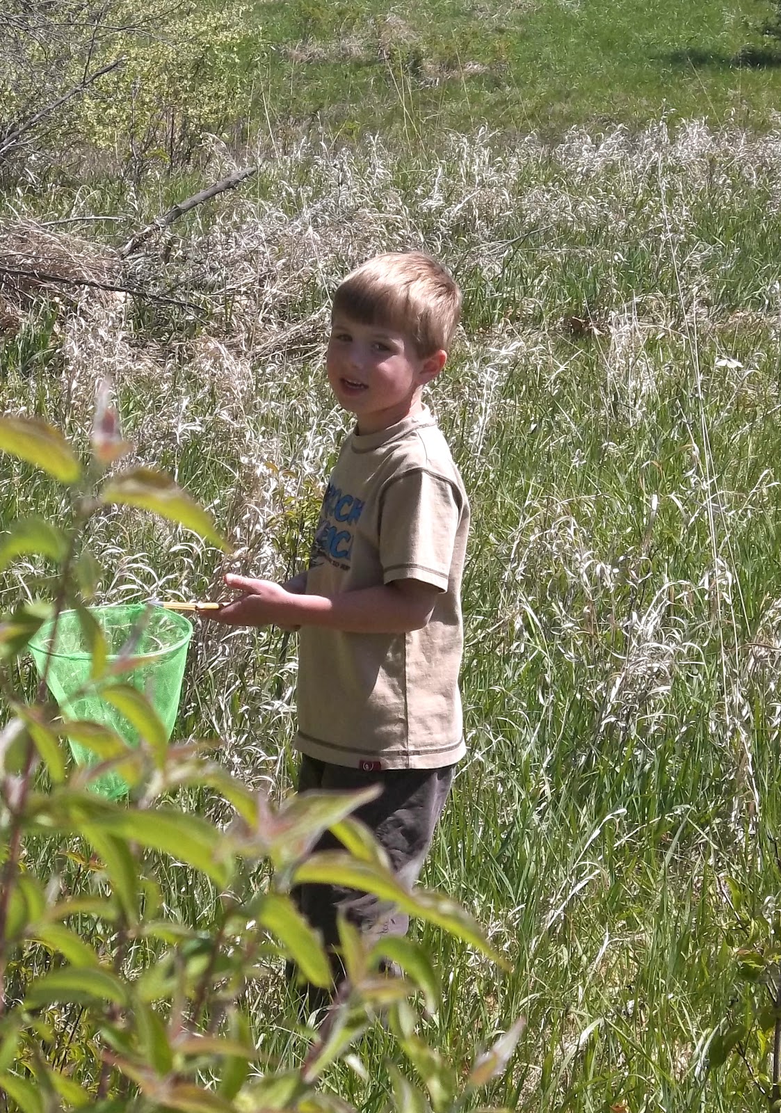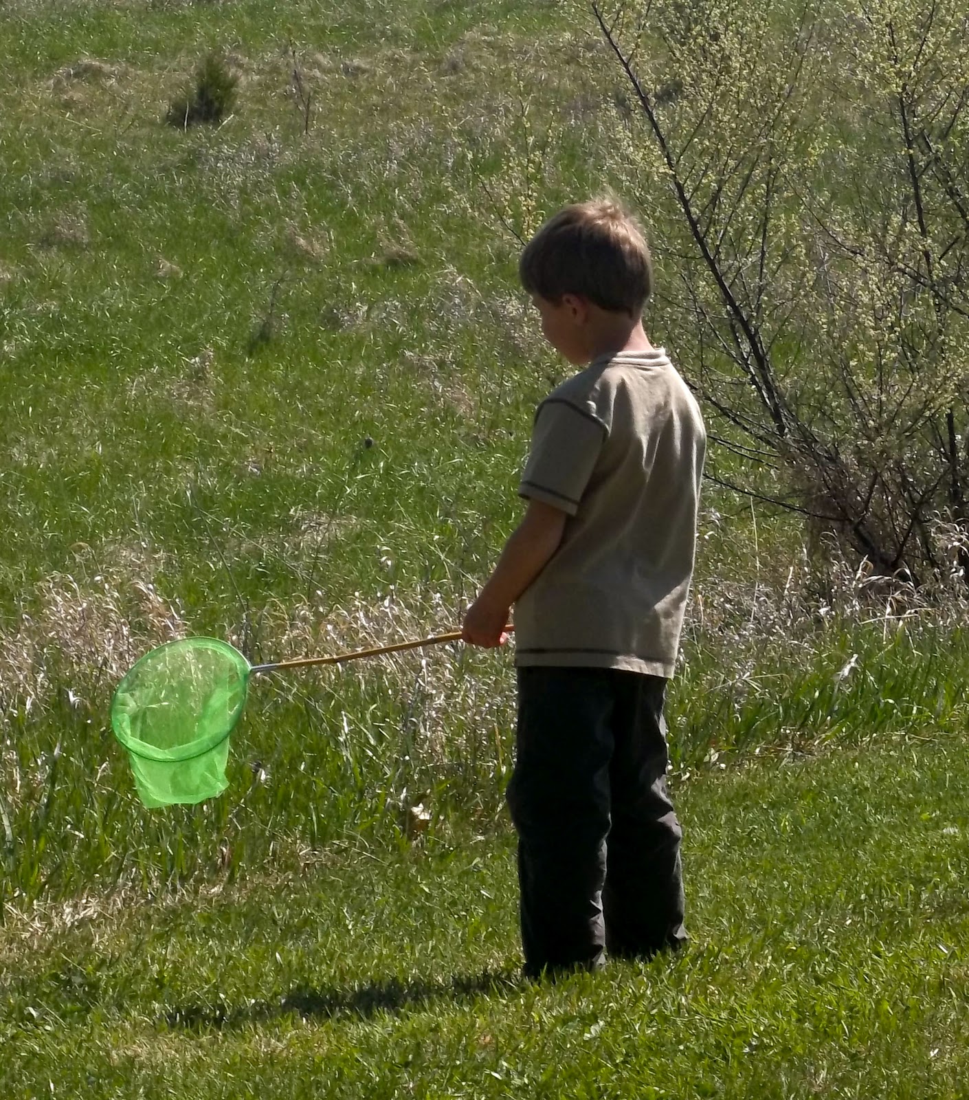My brown-haired boy tramples the grass and swipes at the sky, his sister at his heels.