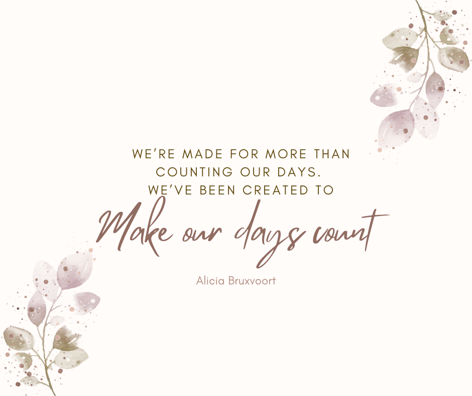 That one little phrase says it all. We’re made for more than counting our days. We’ve been created to make our days count.